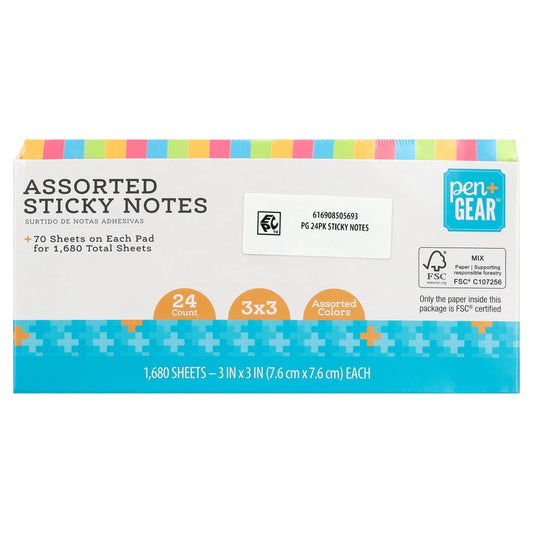 Pen + Gear Paper Sticky Notes, Neon, 3" X 3", 1680 Sheets, 24 Counts