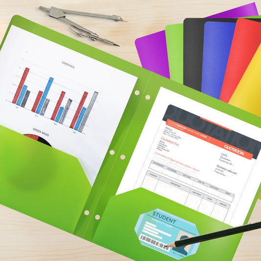 Letter Size 2-Pocket Folders with 3-Hole Punch, Assorted Colors, 6 Count
