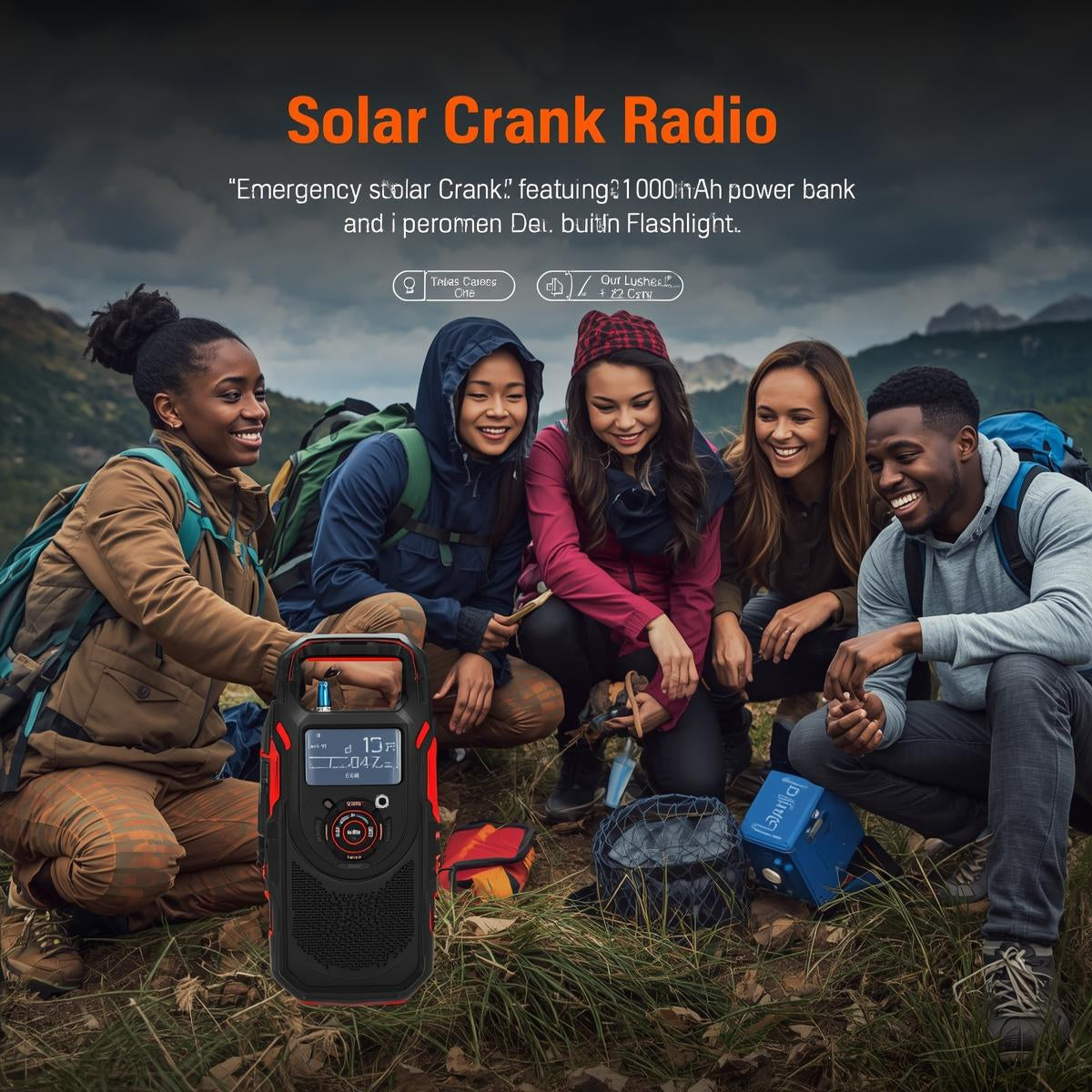 Emergency Solar Crank Radio with 1000mAh Power Bank and Flashlight - Your Essential Survival Tool